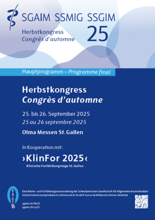 In diesem Sinne möchten wir Sie zu einem vielseitigen und spannenden 9. Herbstkongress der Schweizerischen Gesellschaft für Allgemeine Innere Medizin (SGAIM) nach St.Gallen einladen. Dabei spannt die SGAIM mit den Klinischen Fortbildungstagen (KlinFor) von Health Ostschweiz des universitären Lehr- und Forschungsspitals St.Gallen zusammen.